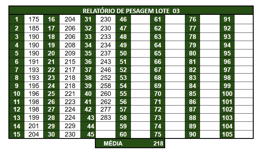 43 MACHOS DE 7 A 8 MESES. LOTE TODO DE NELORE, LOTE, SADIO, COURO SOLTO, BOM PADRÃO RACIAL, DE BOA CONFORMAÇÃO, COM BOM GANHO COMPENSATÓRIO. LOTE TODO DE IATF, CRIOULOS DA FAZENDA, LOTE TODO COM GENÉTICA COMPROVADA DO PROGAMA DE MELHORAMENTO GENÉTICO NELORE DE PRODUÇÃO (CEIP). PESADAS NO PERÍODO DA TARDE, FOI  DESMAMADA NO DIA DA FILMAGEM. ACESSO CARRETA ALTA.