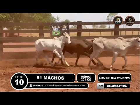 LOCALIZAÇÃO: 28 KM DE ROCHEDO SENTIDO BOM FIM DESCRIÇÃO DO LOTE: 17 MACHOS DE 10 A 12 MESES, NELORES, CRIOULOS, SADIOS, BOM PADRÃO RACIAL, OBS FORAM DESMAMADOS NO DIA DA FILMAGEM, PESADOS NA BALANÇA DA FAZENDA. ACESSO CARRETA BAIXA.