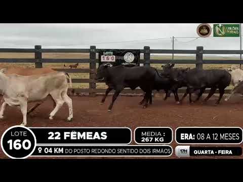LOCALIZAÇÃO: 10 KM DE AQUIDAUANA SENTIDO CIPOLÂNDIA DESCRIÇÃO DO LOTE: 22 FÊMEAS NELORES DE 18 A 24 MESES, SADIAS, DE BOA CONFORMAÇÃO, BOM RACIAL, COM GANHO COMPENSATÓRIO. PESADAS NO PERÍODO DA MANHÃ. ACESSO A CARRETA ALTA.