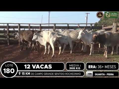 LOCALIZAÇÃO: 15 KM DE CAMPO GRANDE SENTIDO ROCHEDINHO DESCRIÇÃO DO LOTE: 12 VACAS NELORES ACIMA DE 36 MESES, SADIAS, DE BOA CONFORMAÇÃO.SEM DIAGNÓSTICO DE GESTAÇÃO. PESADAS NO PERÍODO DA TARDE.ACESSO A CARRETA ALTA.
