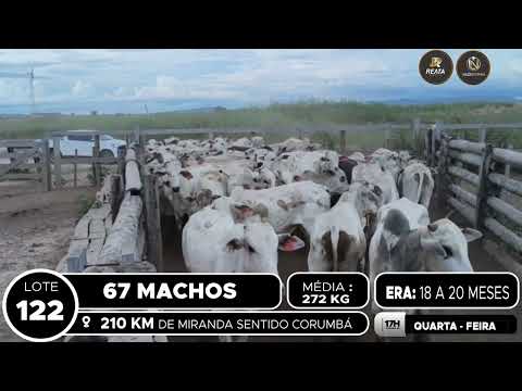 LOCALIZAÇÃO: 210 KM DE MIRANDA SENTIDO CORUMBÁ DESCRIÇÃO DO LOTE: 67 MACHOS NELORE DE 18 A 20 MESES, GADO CRIOULO, SADIO E DE BOA CONFORMAÇÃO. PESAGEM REALIZADA NO BALANÇÃO NO PERÍODO DA TARDE. ACESSO A CARRETA ALTA