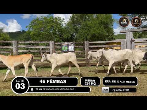 LOCALIZAÇÃO: 76KM DE MARACAJU SENTIDO POLACO DESCRIÇÃO DO LOTE: 46 FÊMEAS 12 A 24 MESES, CONTENDO NO LOTE NELORE E ANELORADA, SADIAS, CRIOULAS, BOM PADRÃO RACIAL. PESADAS NA BALANÇA DA FAZENDA. ACESSO CARRETA BAIXA