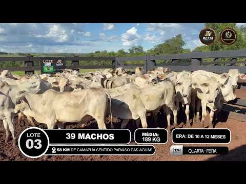 LOCALIZAÇÃO: 58 KM DE CAMAPUÃ SENTIDO PARAÍSO DAS ÁGUAS DESCRIÇÃO DO LOTE: 39 MACHOS 10 A 12 MESES. CONTENDO NO LOTE 38 NELORE E 01 ANELORADOS, LOTE SADIO, DE BOA CONFORMAÇÃO, COM BOM GANHO COMPENSATÓRIO. ACESSO CARRETA ALTA BAIXA E TRUCK.