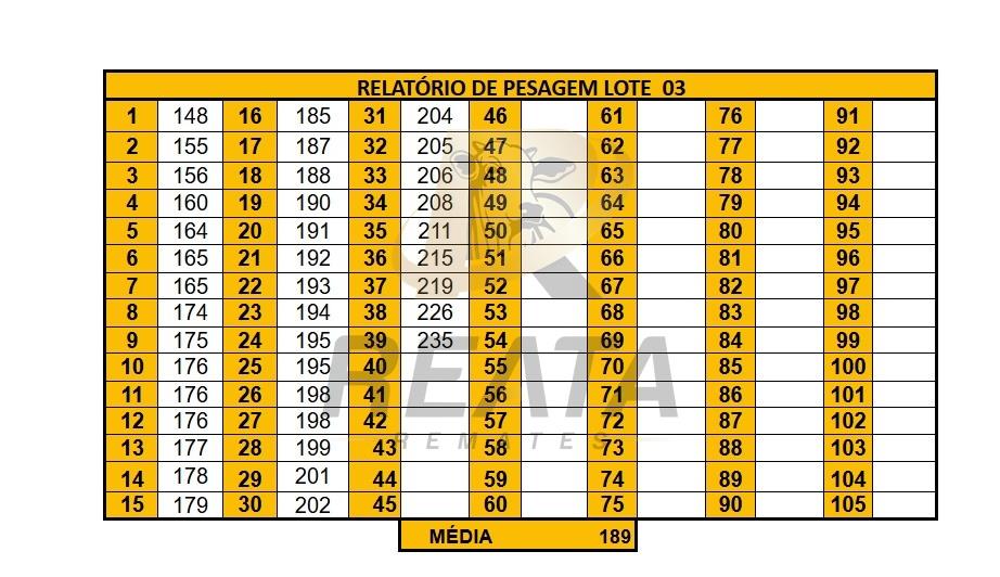 LOCALIZAÇÃO: 10 KM DE BONITO SENTIDO 21 DESCRIÇÃO DO LOTE: 15 MACHOS DE 12 A 15 MESES. CONTENDO NO LOTE 14 MEIO SANGUE ANGUS E 1 CRUZADO. LOTE SADIO, HOMOGÊNEO, DE BOA CONFORMAÇÃO COM BOM GANHO COMPENSATÓRIO. TODOS INTEIROS. PESADOS NO PERÍODO DA MANHÃ, ACESSO CARRETA ALTA.