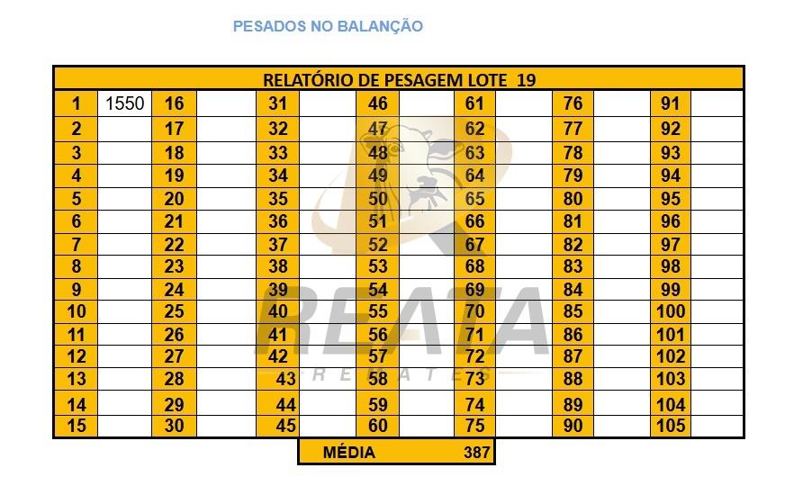 LOCALIZAÇÃO: 30KM DE ROCHEDO SENTIDO TABOCO DESCRIÇÃO DO LOTE: 01 TOURUNO A36 MESES, SADIO, INTEIRO. PESADO NA BALANÇA DA FAZENDA, ACESSO A CARRETA ALTA.
