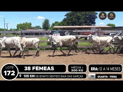 LOCALIZAÇÃO: 105 KM DE BONITO, SENTIDO BAIA DAS GARÇAS DESCRIÇÃO DO LOTE: 38 FÊMEAS NELORE DE 12 A 14 MESES, GADO CRIOULO, SADIO E DE BOA CONFORMAÇÃO. COM ACESSO A CARRETA ALTA