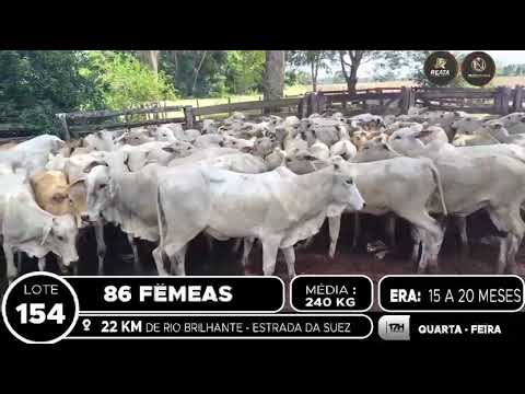 LOCALIZAÇÃO: 22 KM DE RIO BRILHANTE – ESTRADA DA SUEZ DESCRIÇÃO DO LOTE: 86 FÊMEAS NELORE E ANELORADAS DE 15 A 20 MESES, GADO SADIO, COM BOM GANHO COMPENSATÓRIO, DE BOA CONFORMAÇÃO. ACESSO A CARRETA ALTA
