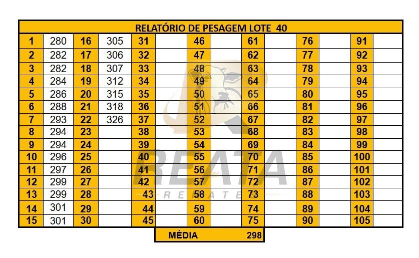LOCALIZAÇÃO: 20KM DE BANDEIRANTES SENTIDO MS 340 DESCRIÇÃO DO LOTE: 40 FÊMEAS NELORE, ANELORADA E CRUZAMENTO INDUSTRIAL, 18 A 24 MESES. SADIAS, COURO SOLTO. COMPENSATÓRIO. PESADAS NA BALANÇA ELETRÔNICA NO PERÍODO DA TARDE. ACESSO A CARRETA BAIXA.