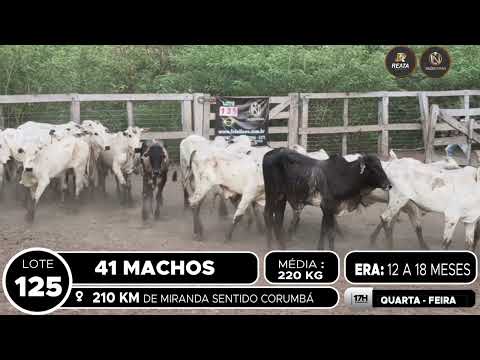 LOCALIZAÇÃO: 210 KM DE MIRANDA SENTIDO CORUMBÁ DESCRIÇÃO DO LOTE: 41 MACHOS NELORE DE 12 A 18 MESES, GADO CRIOULO, SADIO E DE BOA CONFORMAÇÃO. PESAGEM REALIZADA NO BALANÇÃO NO PERÍODO DA TARDE. ACESSO A CARRETA ALTA