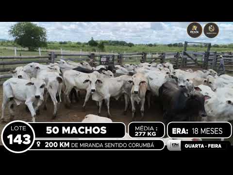 LOCALIZAÇÃO: 200 KM DE MIRANDA SENTIDO CORUMBÁ DESCRIÇÃO DO LOTE: 50 MACHOS NELORE DE 18 MESES, GADO CRIOULO, SADIO E DE BOA CONFORMAÇÃO, COM EXCELENTE GANHO COMPENSATÓRIO. PESAGEM REALIZADA NO BALANÇÃO NO PERÍODO DA MANHÃ. ACESSO A CARRETA ALTA